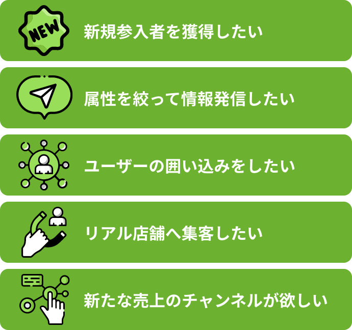 オンラインでありながら地域に根ざした交流ができます。店舗などオフラインへの誘導が可能になります。